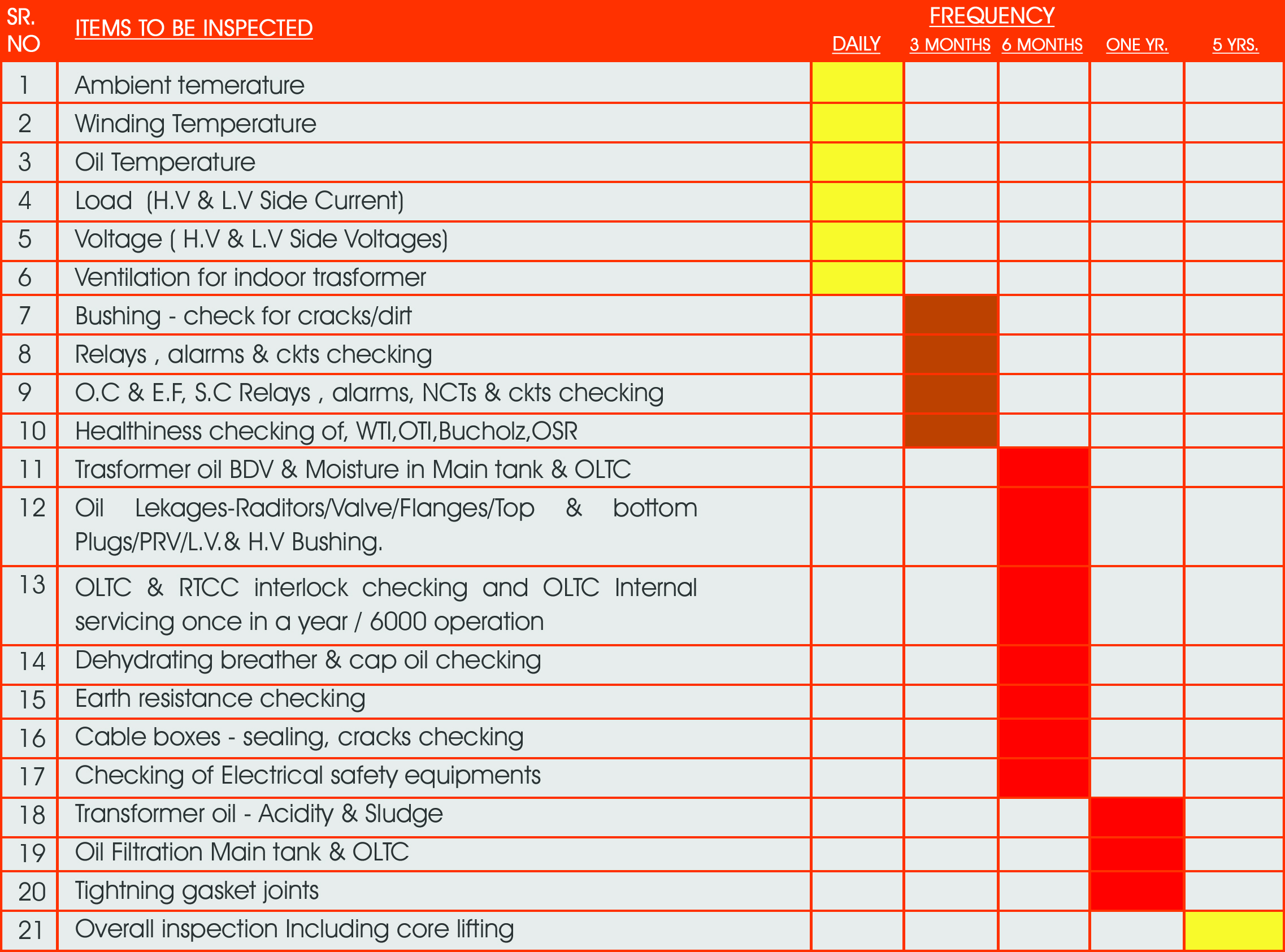 Trasformers maintenance schedule as per IS 10028-Part III- Code of Practice